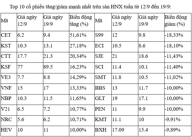 Top 10 cổ phiếu tăng/giảm mạnh nhất tuần: Nhiều cổ phiếu nhỏ tăng mạnh