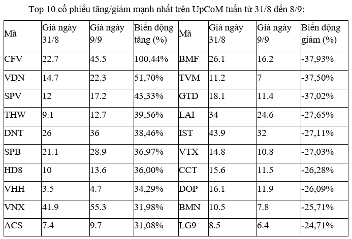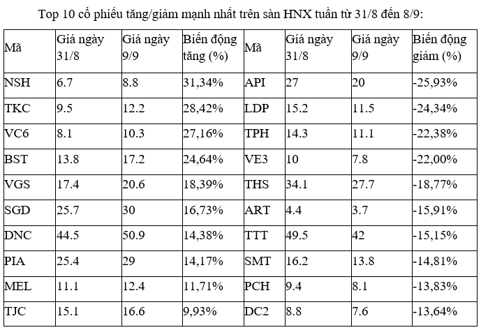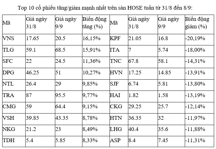 Top 10 cổ phiếu tăng/giảm mạnh nhất tuần: Nhiều cổ phiếu vừa và nhỏ bị bán tháo