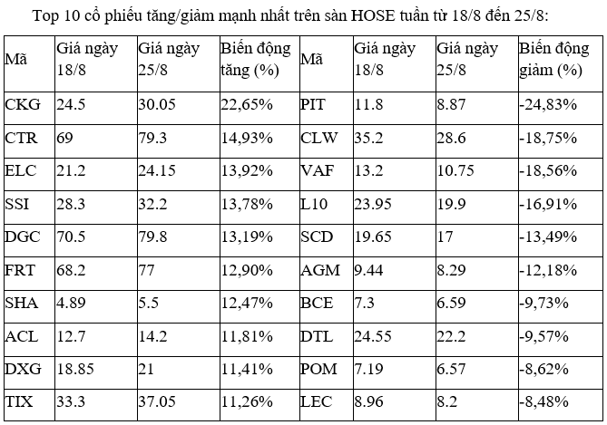 Top 10 cổ phiếu tăng/giảm mạnh nhất tuần: Nhóm cổ phiếu công ty chứng khoán manh nha tạo sóng