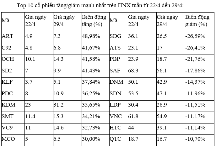 Ở chiều ngược lại, không có mã nào giảm quá sâu, với DTA, PNC, GMC dù giảm hơn 10%, nhưng thanh khoản tương đối thấp.