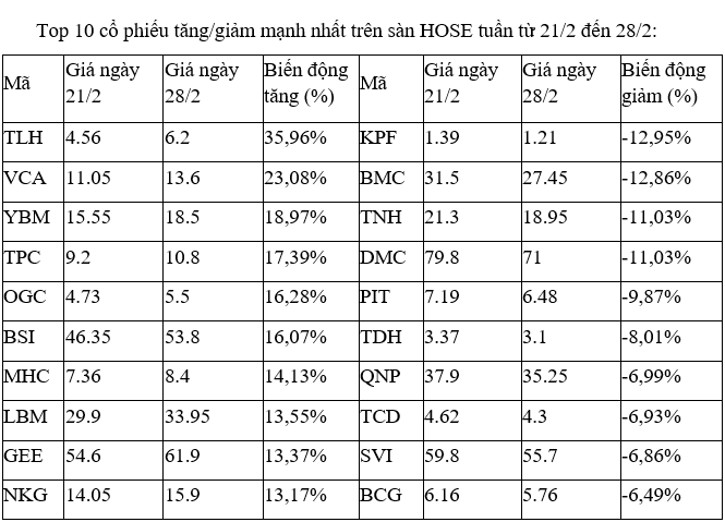 Top 10 cổ phiếu tăng/giảm mạnh nhất tuần: Nhóm cổ phiếu thép bứt tốc