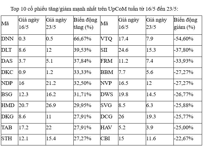 Trên UpCoM, thêm một tuần mà các cổ phiếu biến động mạnh nhất đều giao dịch thưa thớt, thanh khoản khớp lệnh thấp trong các phiên.