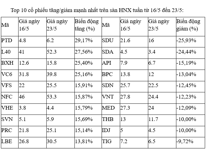 Trên sàn HNX, phần lớn các mã tăng tốt nhất đều thanh khoản thấp. Ngoại trừ cổ phiếu VFS, khi thanh khoản duy trì ở mức tích cực, khớp trung bình 2-3 triệu đơn vị/phiên trong tuần. Tương tự là VHE, SVN khi cũng có thanh khoản ở mức khá, nhưng trồi sụt.
