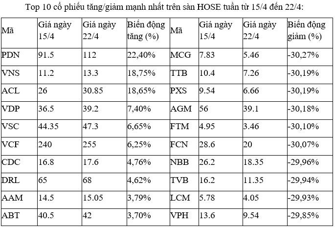 Mặt khác, phản ảnh sự ảm đạm của thị trường, theo dữ liệu, ngoài những cổ phiếu trong top 10 này, thì còn tương đối nhiều cổ phiếu khác cũng có mức giảm sâu và phần lớn là các mã vốn hóa vừa và nhỏ, như TCD, TDH, BCG, HAR, DAG, HQC, YEG, TGG, DLG, QBS giảm từ 25% đến gần 30%.