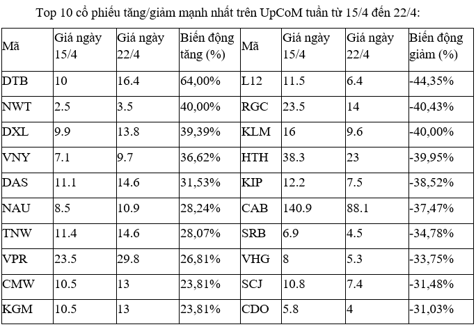Trên UpCoM, nhóm cổ phiếu tăng, giảm mạnh nhất đáng chú ý có một số cổ phiếu như VHG, CDO, khi thanh khoản cao trong phiên, trong đó, VHG có những thời điểm là cổ phiếu giao dịch sôi động nhất UpCoM.