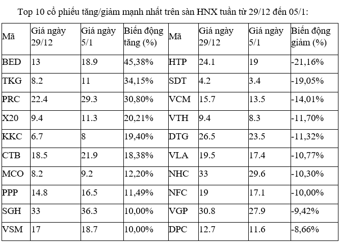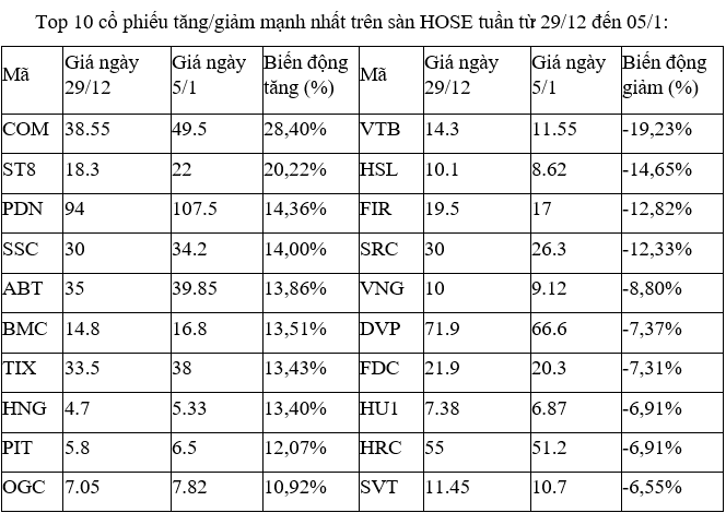 Đáng chú ý khác là cổ phiếu FIR cũng có tuần giao dịch tiêu cực, với hai phiên giảm sàn ngày 03 và 04/1, trước khi bật hồi gần 6% trong phiên cuối tuần, qua đó, giúp cổ phiếu này không giảm sâu hơn.