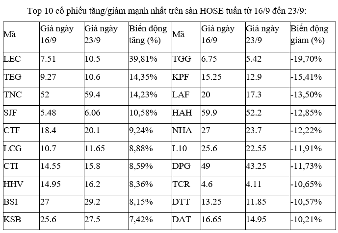 Ở chiều ngược lại, cổ phiếu KPF thêm một tuần bị bán tháo, sau khi tuần trước là cổ phiếu giảm mạnh thứ tám trên sàn với mức giảm 9,23%.