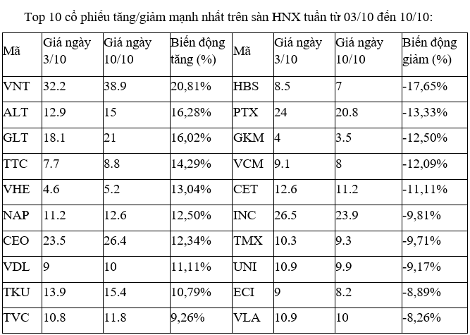 Ở chiều ngược lại, cổ phiếu HBS bị bán tháo sau khi chính thức nhận quyết định đưa vào diện hạn chế giao dịch kể từ ngày 08/10.