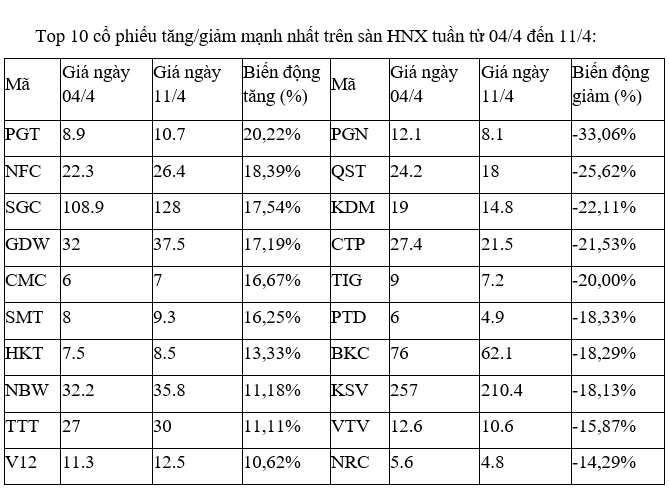 Trong khi đó, ở chiều ngược lại, một số cái tên chịu sức ép lớn ngay cả trong hai phiên hồi phục mạnh cuối tuần cũng chỉ ghi nhận mức tăng vừa phải, thậm chí chỉ nhích nhẹ như NRC, chỉ tăng 2% mỗi phiên sau khi giảm sàn liên tiếp trước đó vào 08/4 và 09/4.