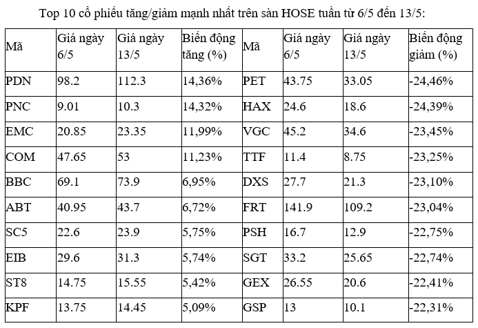 Top 10 cổ phiếu tăng/giảm mạnh nhất tuần: Tuần giao dịch đầy 'nước mắt'