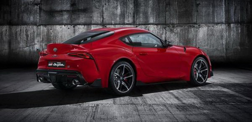 Đuôi xe Toyota Supra khá cơ bắp với những đường nét cắt xẻ. Ống xả đôi đối xứng qua đèn báo phanh lấy cảm hứng từ xe đua F1.