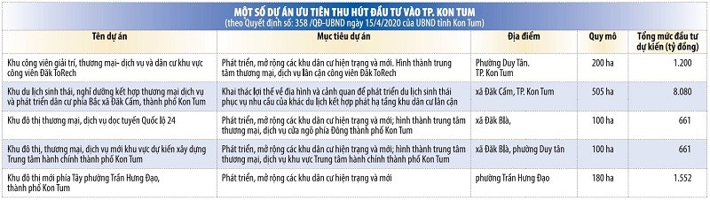 Chủ tịch UBND tỉnh Kon Tum Lê Ngọc Tuấn cho biết, các dự án đều có mức đầu tư lớn với nguồn từ ngân sách và các nguồn vốn hợp pháp khác. Mục tiêu các dự án là nhằm từng bước hoàn chỉnh hạ tầng đô thị và mở rộng không gian TP. Kon Tum theo quy hoạch, khai thác tiềm năng quỹ đất để đầu tư phát triển hạ tầng, góp phần phát triển các khu đô thị và kinh tế xã hội của TP. Kon Tum.