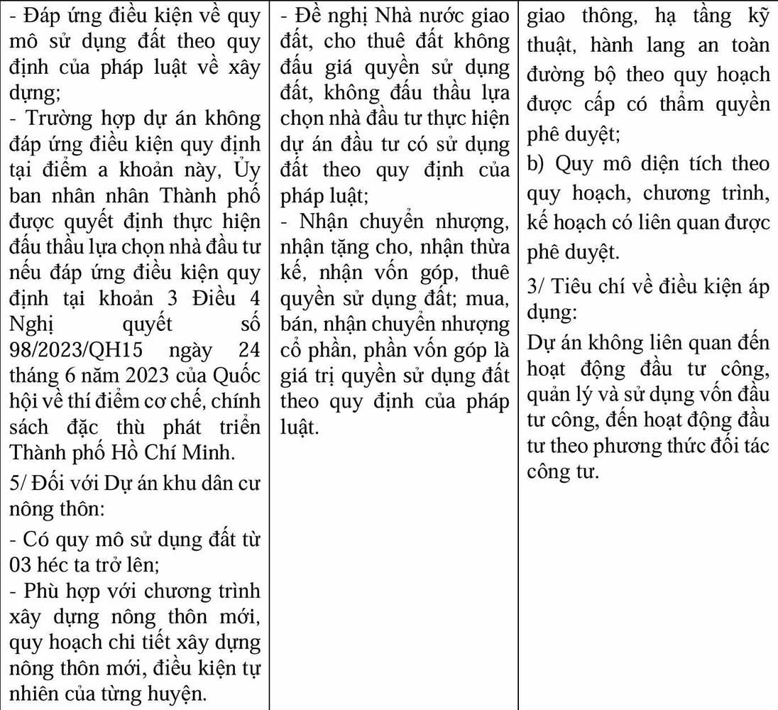 Theo tờ trình, trước khi sáp nhập, HĐND TP.HCM, Bình Dương và Bà Rịa - Vũng Tàu đã ban hành quy định các tiêu chí để quyết định thực hiện đấu thầu lựa chọn nhà đầu tư thực hiện dự án đầu tư có sử dụng đất.