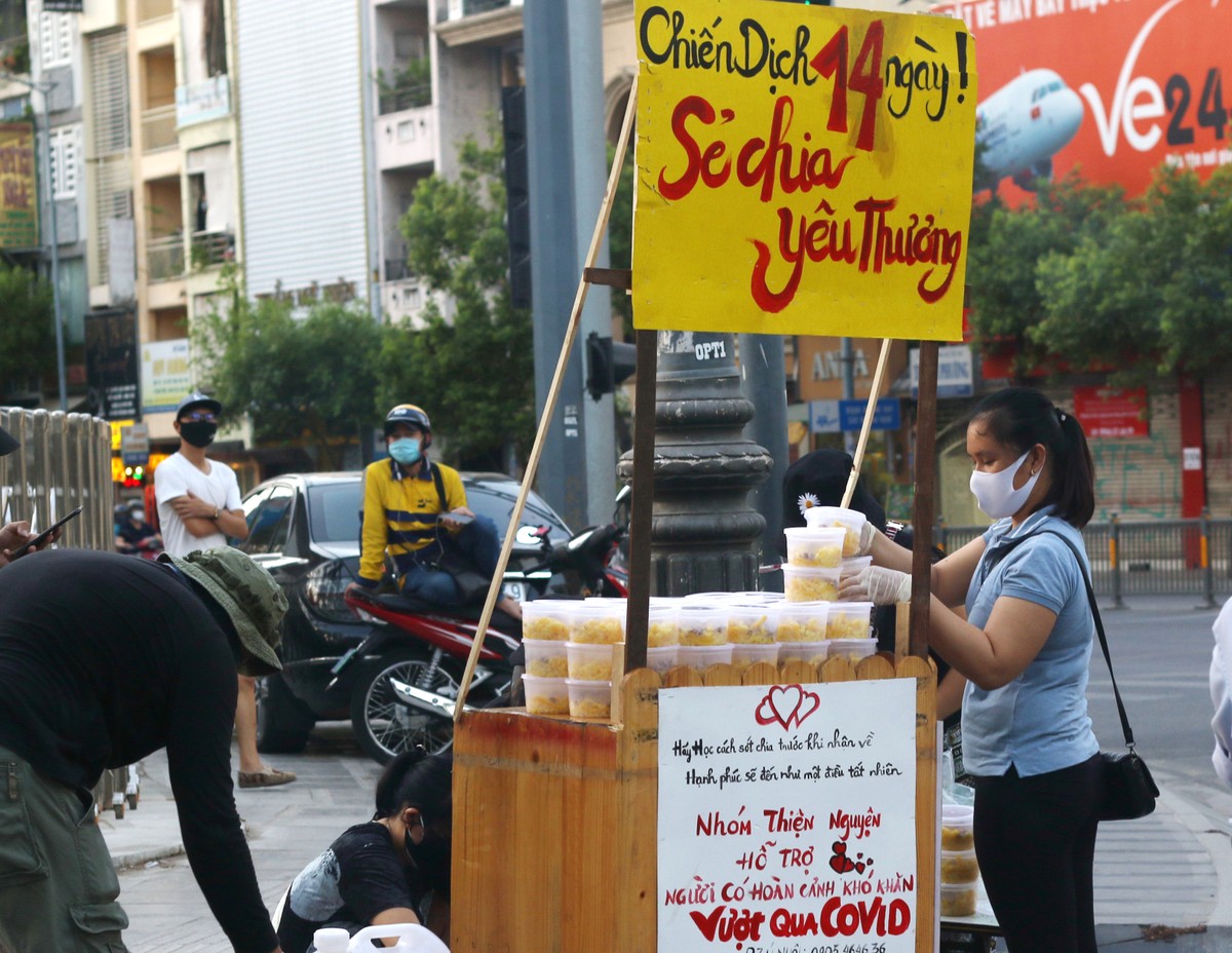 Nhiều nhóm trẻ đã lập ra chiến dịch 14 ngày “chia sẻ yêu thương ” với những phần ăn nhanh vừa ngon, vừa hợp vệ sinh trên đường Nam Kỳ Khởi Nghĩa, quận 3.