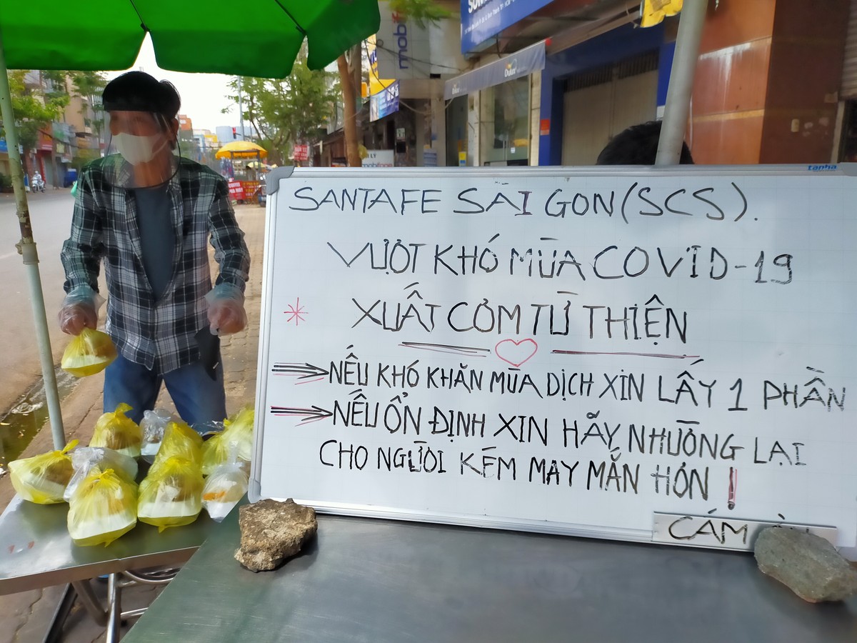 Khắp Sài Gòn đi đâu cũng thấy những dòng chữ viết rất cảm động và dễ thương “Nếu bạn thấy không ổn hãy lấy 1 phần,…”.