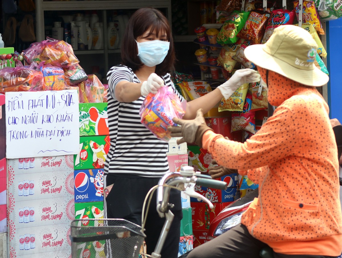 Chủ tiệp tạp hóa trên đường Thích Quảng Đức, quận Phú Nhuận tặng mỳ gói và sữa cho người khó khăn.
