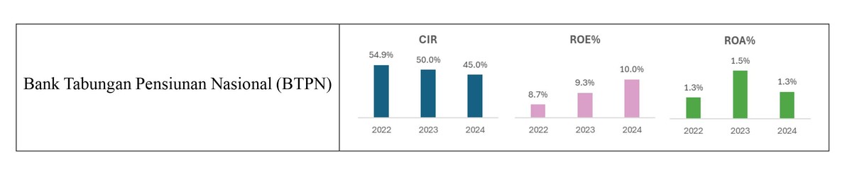 Jenius chú trọng giáo dục tài chính và hòa nhập tài chính cho người trẻ am hiểu công nghệ, thu hút hơn 3,5 triệu người dùng vào năm 2024, tăng trưởng mạnh cả về tiền gửi và giao dịch số. Nhờ hiệu quả số hóa, tỷ lệ chi phí trên thu nhập của BTPN giảm xuống dưới 45%, còn ROE tăng đều nhờ giảm chi phí chi nhánh và tăng thu nhập phí từ dịch vụ số.