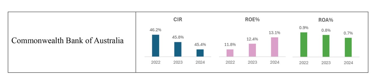 Nhờ vậy, ROE của Ngân hàng tăng từ mức 11,8% trong năm 2022 lên mức 13,1% vào năm 2024, giữ vị trí cao nhất trong các ngân hàng Úc; tỷ lệ chi phí trên thu nhập giảm còn 45,4%; còn chi phí dự phòng rủi ro tín dụng giảm 23% nhờ năng lực phân tích dự báo và hiểu biết sâu về hành vi khách hàng.