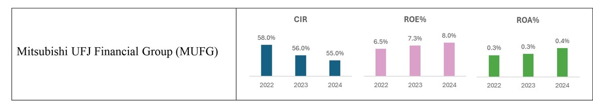 Nhờ đó, ROE của MUFG tăng từ 6,5% năm 2022 lên 8% năm 2024; tỷ lệ chi phí trên thu nhập giảm đều, còn sự trung thành của khách hàng cũng được củng cố nhờ các trải nghiệm số cá nhân hóa và dịch vụ qua video.