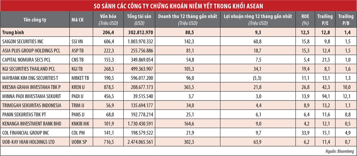 So sánh các công ty chứng khoán niêm yết trong khối ASEAN.