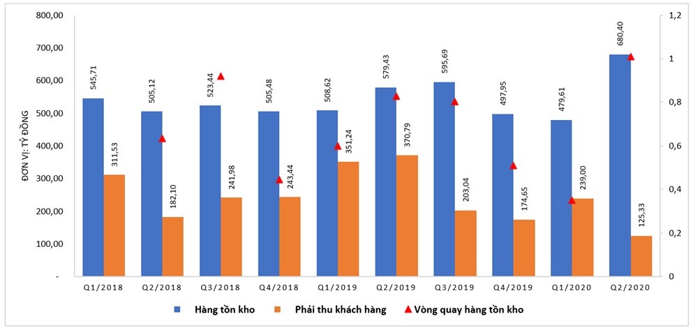 Kết quả là chỉ số vòng quay hàng tồn kho của DAG được cải thiện mạnh so với Quý 1/2020 và so với cùng kỳ năm 2019. Trong khi đó, các khoản phải thu khách hàng cũng giảm mạnh về mức 125,3 tỷ đồng – mức thấp nhất trong vòng nhiều năm trở lại đây. Các chỉ số thanh khoản cũng được cải thiện rõ rệt so với Quý 1/2020.