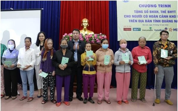 Nằm trong khuôn khổ Chương trình, ngoài 02 Lễ trao tặng sổ BHXH, thẻ BHYT tại TP. Đà Nẵng và tỉnh Quảng Nam ngày hôm nay, từ ngày 14-20/12/2022, 07 Đoàn Công tác do Phó Chủ tịch chuyên trách Hội đồng Quản lý BHXH Nguyễn Văn Cường; các Phó Tổng Giám đốc, Phó Bí thư Đảng ủy cơ quan BHXH Việt Nam làm Trưởng đoàn cũng đã tới 20 tỉnh, thành phố (gồm: Quảng Nam, Đà Nẵng, TP.Hồ Chí Minh, Hà Giang, Tuyên Quang, Long An, Tây Ninh, Hậu Giang, Sóc Trăng, Trà Vinh, Sơn La, Hòa Bình, Quảng Bình, Hà Tĩnh, Nghệ An, Lào Cai, Đắk Lắk, Gia Lai, Yên Bái, Phú Thọ) để trực tiếp trao tặng đại diện của 2.895 sổ BHXH và 14.762 thẻ BHYT cho những người dân khó khăn tại các địa phương.