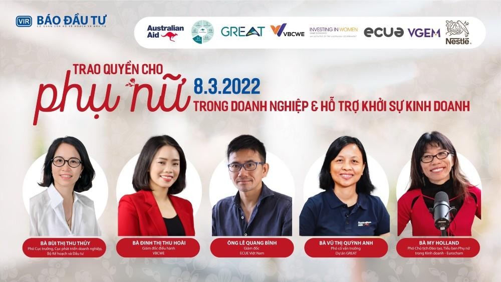 Nhằm đánh giá rõ nét về vai trò và những đóng góp của phụ nữ trong việc phát triển của doanh nghiệp, Báo Đầu tư tổ chức Tọa đàm trực tuyến với chủ đề: “Trao quyền cho phụ nữ trong doanh nghiệp & Hỗ trợ khởi sự kinh doanh”.