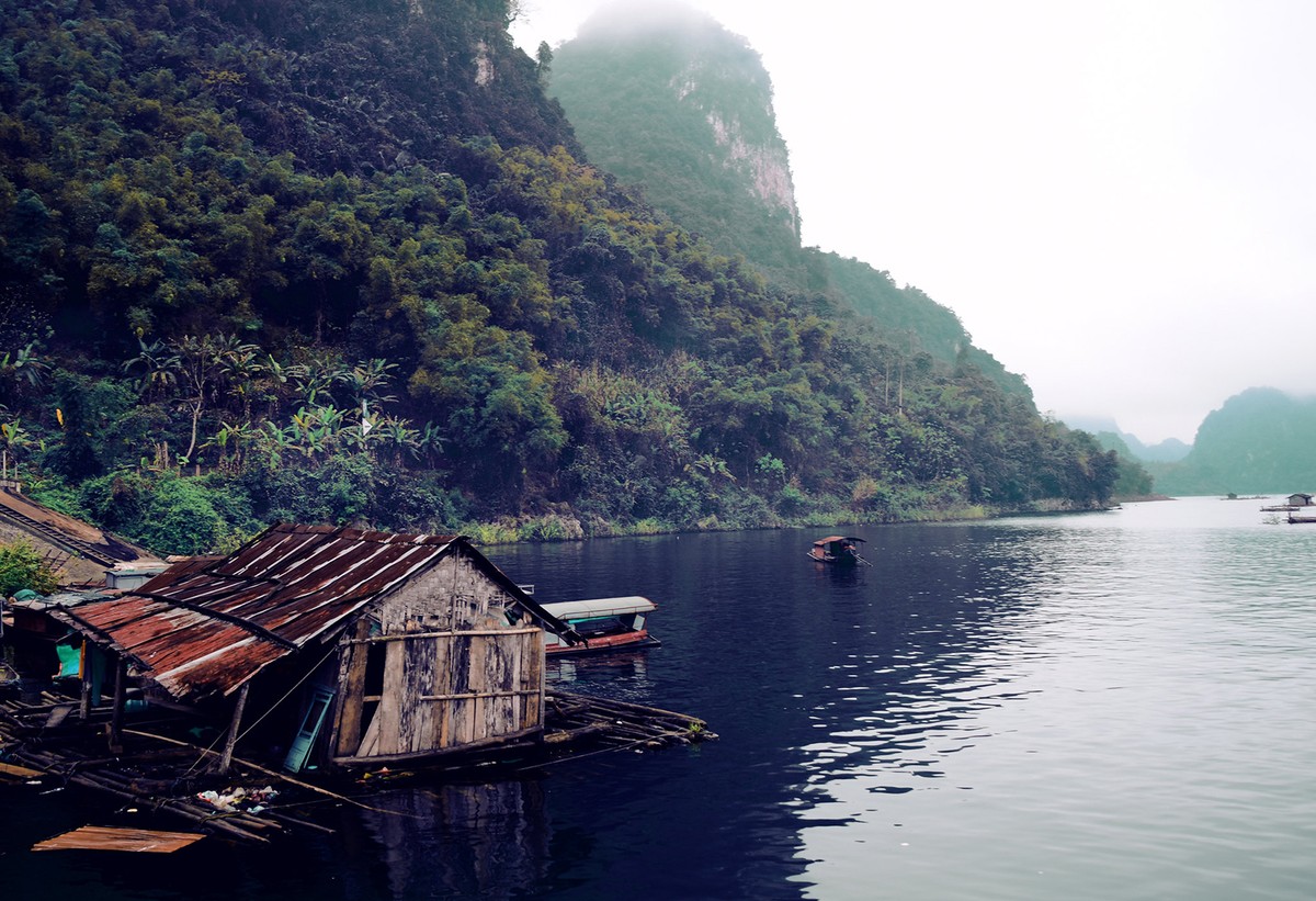 Sau bữa cơm, nhiều người trong đoàn tranh thủ lăn ra sàn đò ngủ một giấc. Một số khác đứng ở mui thuyền hóng gió, nói đủ thứ chuyện. Tôi thì tranh thủ mượn chiếc cần của Long trổ tài câu cá, thực chất là muốn yên tĩnh một góc ngắm nhìn mặt nước xanh nhấp nhô sóng, lấp loáng phản quang sắc ngọc bích giữa trưa Hè.