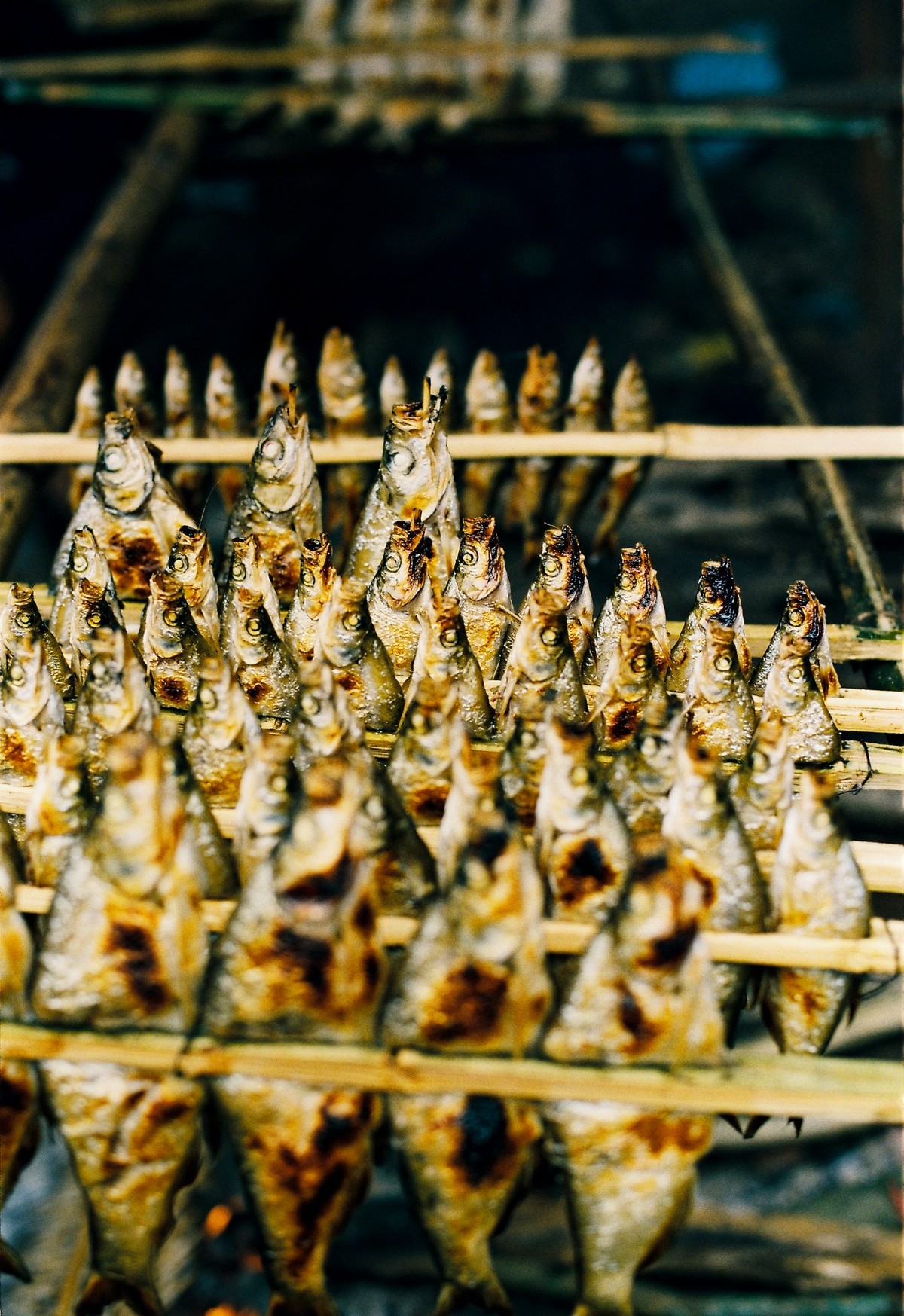 Bữa cơm dọn lên có món cá nướng, gà nướng và một mẹt cỗ lá. Cá nướng sông Đà từ lâu đã được coi như một đặc sản riêng của mảnh đất xứ Mường này. Những con cá thiểu, cá trắm đen, cá măng... đánh bắt từ lòng hồ nên thịt thơm bùi, da giòn, chấm với nước mắm và ăn cùng chén rượu ngô thì vô cùng đậm đà.