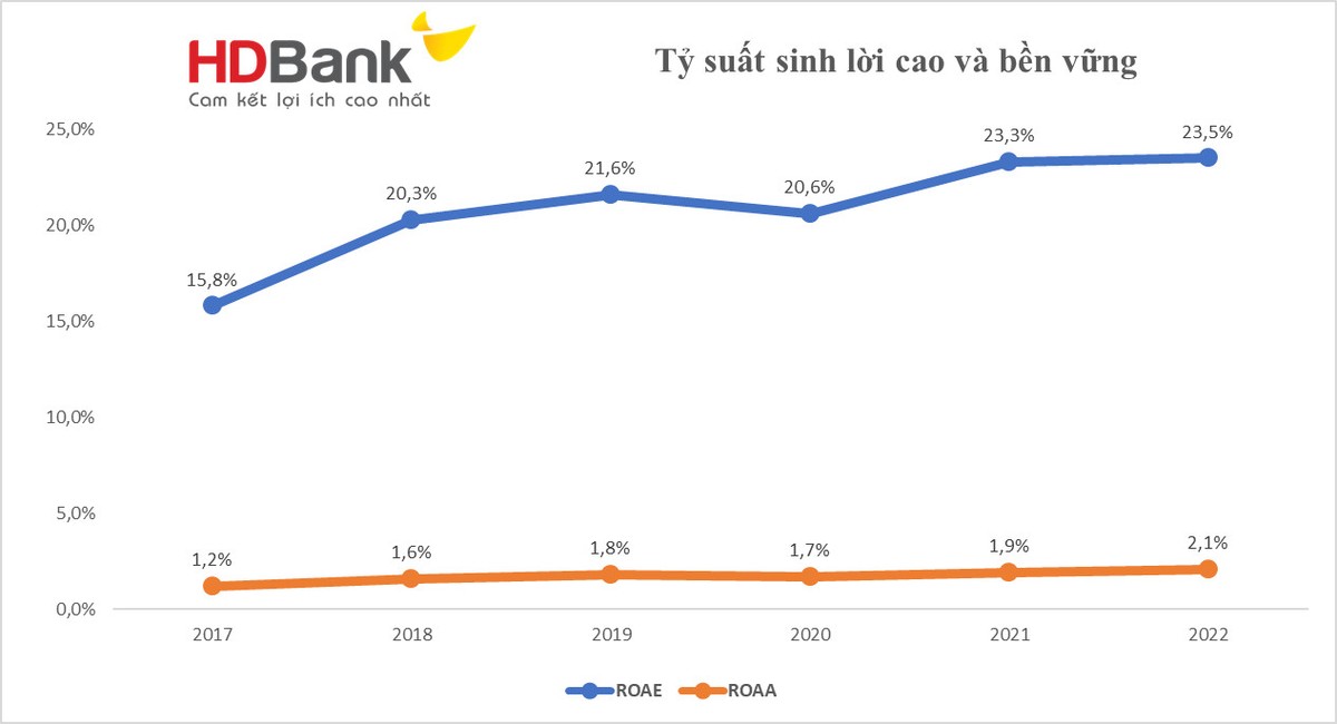 Các chỉ tiêu quan trọng minh chứng cho hiệu quả hoạt động của HDBank tiếp tục khẳng định vị thế ở top đầu hệ thống các NHTM Việt Nam, như ROE đạt 25,2% và ROA đạt 2,2%.
