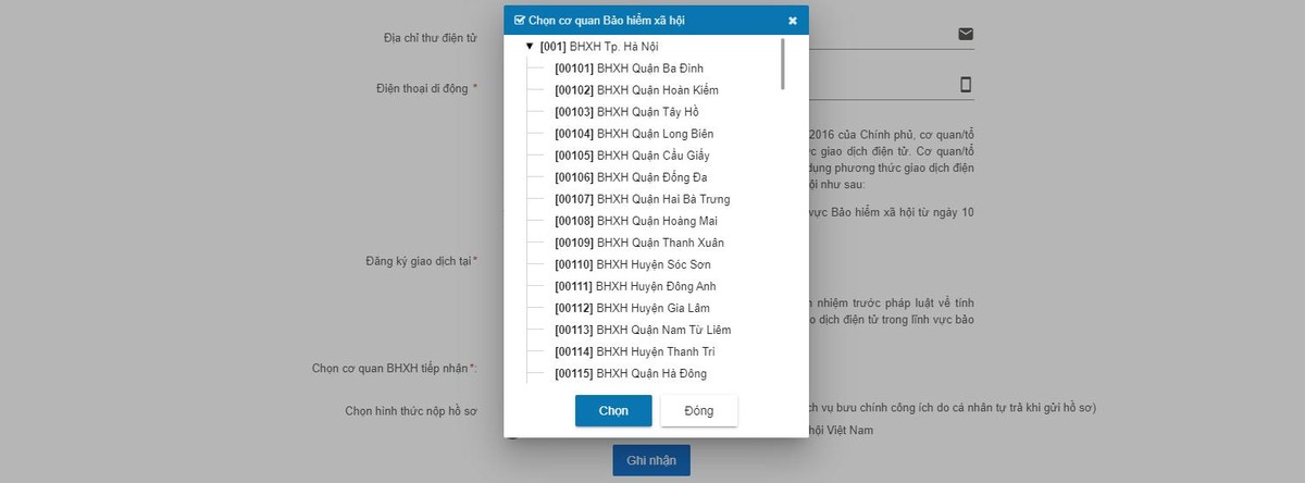 | Chọn cơ quan BHXH tiếp nhận hồ sơ đăng ký. |