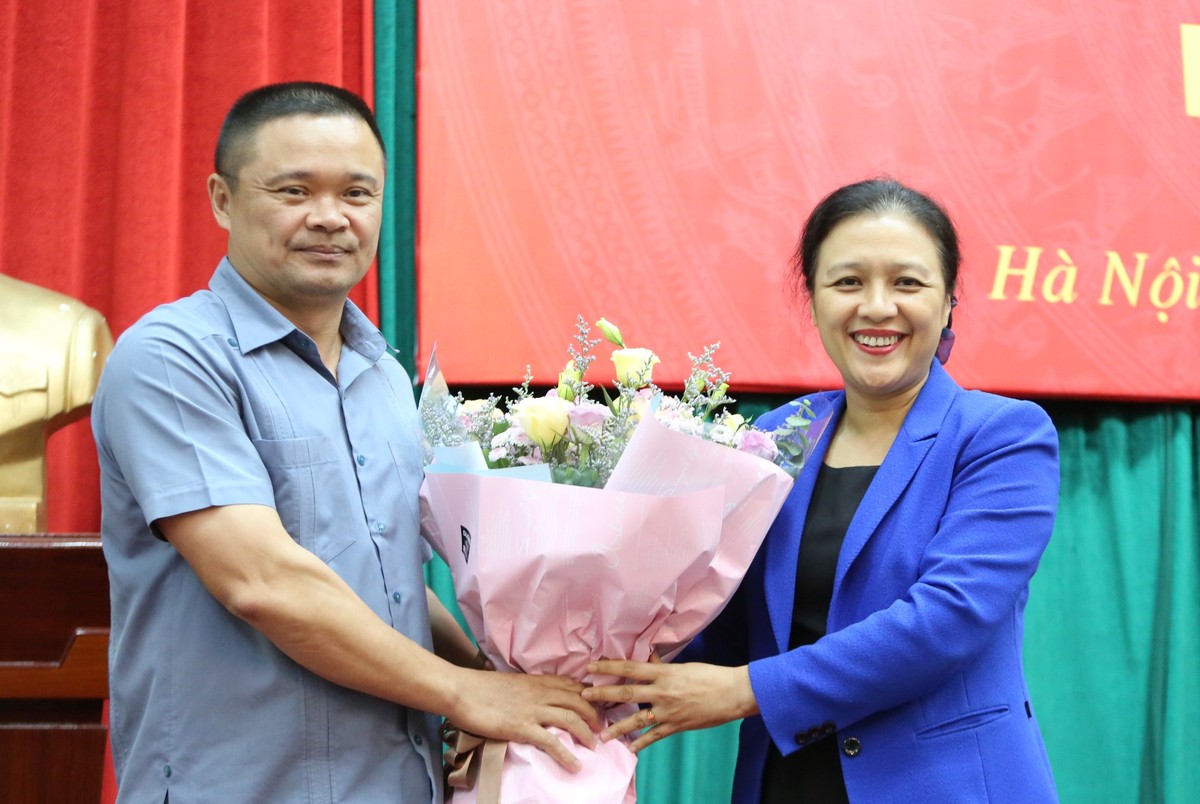Chủ tịch Liên hiệp các tổ chức hữu nghị Việt Nam Nguyễn Phương Nga chúc mừng đồng chí Bạch Ngọc Chiến.