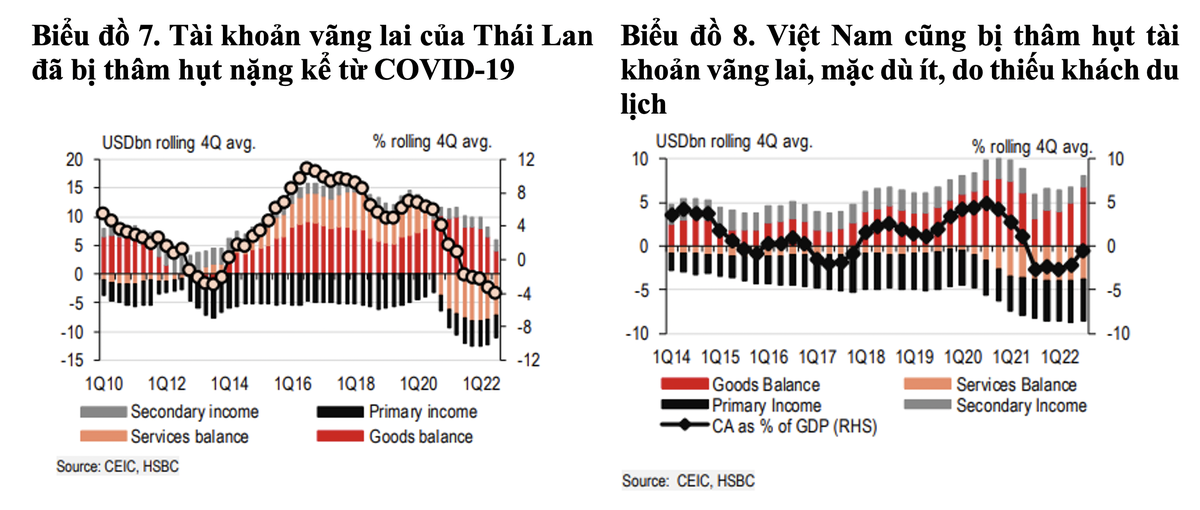 “Tại Việt Nam, thâm hụt dịch vụ ngày càng lớn, do thiếu nguồn thu từ du lịch, là rào cản lớn đối với tài khoản vãng lai. Do đó, doanh thu từ khách du lịch nhiều hơn sẽ cung cấp thêm ngoại hối và giảm thâm hụt dịch vụ cho Việt Nam, mặc dù chúng tôi dự kiến chỉ có một sự phục hồi nhẹ vào năm 2023”, báo cáo của HSBC nhận định.