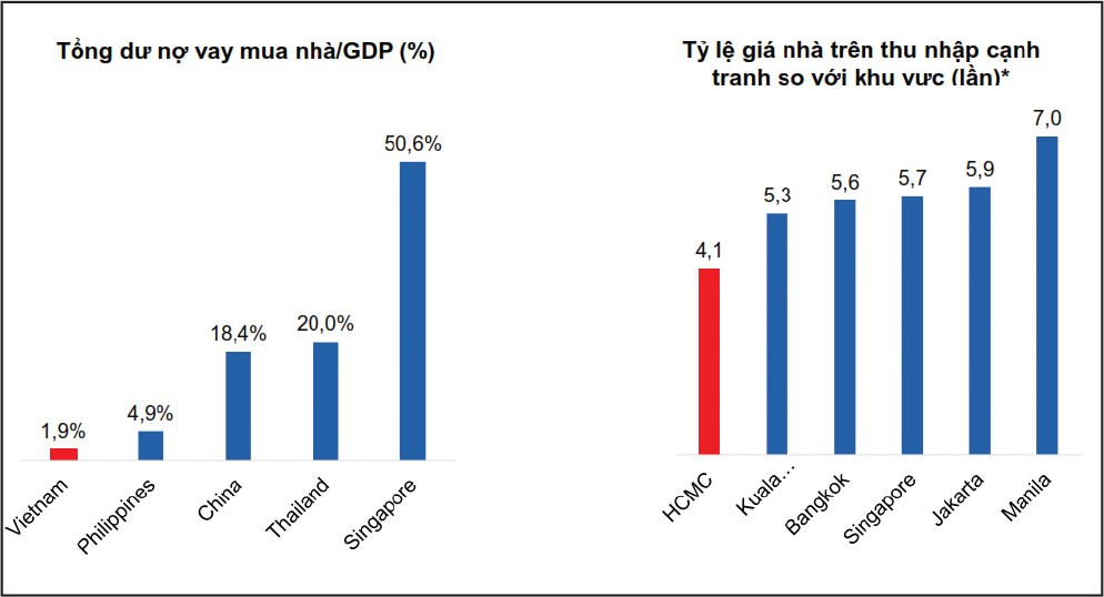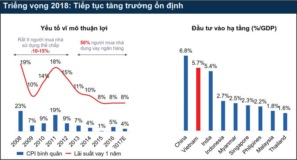SSI Research kỳ vọng một số yếu tố giúp duy trì nhu cầu nhà ở như quá trình đô thị hóa tiếp tục mạnh mẽ, quy mô hộ gia đình được chia nhỏ và xu hướng ở riêng/độc thân gia tăng; mức thu nhập tăng lên, lãi suất ổn định ở mức thấp hỗ trợ khả năng chi trả, trong khi vay thế chấp để mua nhà dự kiến sẽ tiếp tục tăng lên.