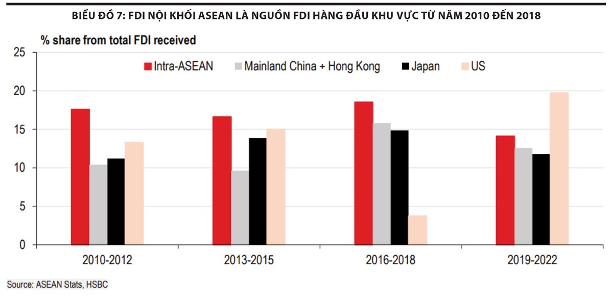 Mặc dù quy mô đầu tư trực tiếp nước ngoài (FDI) nội khối ASEAN gần đây không lớn bằng các khoản đầu tư đến từ Mỹ, nhưng lại ổn định trong một thập kỷ qua, bất chấp những rủi ro địa chính trị trên thế giới và giảm toàn cầu hóa... Thậm chí, FDI nội khối ASEAN vẫn tăng trưởng trong giai đoạn nặng nề nhất của đại dịch Covid-19.