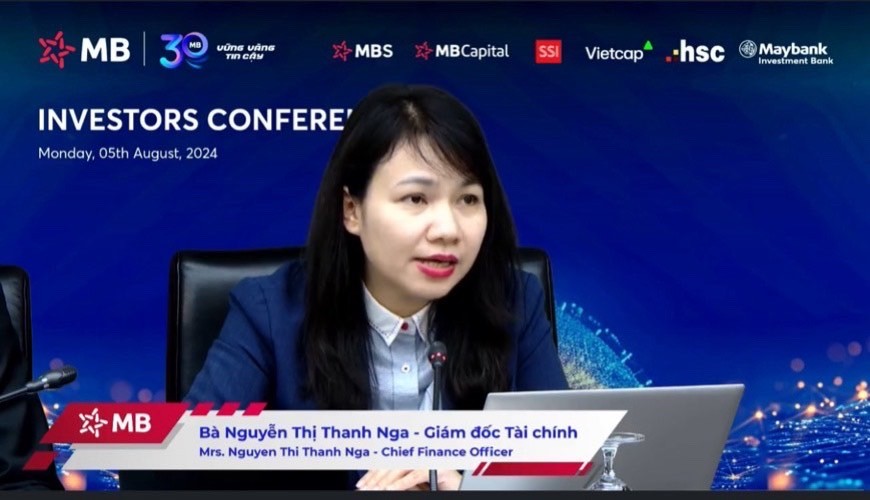 Bà Nguyễn Thị Thanh Nga, Giám đốc tài chính MB cho biết, trong quý 2 lợi nhuận MB tăng trưởng khá tốt so với quý 1, nhưng quý 3 có kịch bản khá thận trọng với tăng trưởng tín dụng khoảng 12-13%. Dự kiến, lợi nhuận quý 3 của MB sẽ dao động tăng/giảm 6% so với kết quả quý 2. Do vậy, MB phấn đấu nỗ lực các nguồn thu kinh doanh tăng cao để đạt được kết quả như ĐHCĐ đã thông qua. Tuy nhiên, năm 2024 là kỷ niệm 30 năm thành lập của Ngân hàng nên mọi người đang cố gắng nỗ lực để đạt được hiệu quả cao nhất có thể.