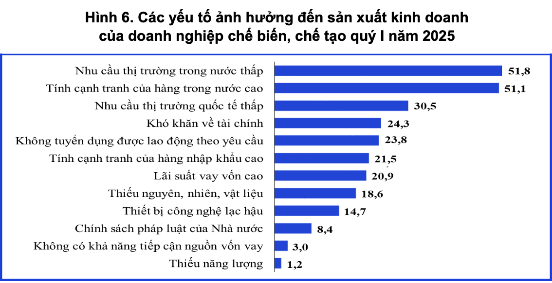 Theo kết quả điều tra xu hướng kinh doanh 6.330 doanh nghiệp ngành công nghiệp chế biến, chế tạo của Cục Thống kê, dự kiến quý II/2025, có 45,8% số doanh nghiệp đánh giá xu hướng sẽ tốt lên so với quý I/2025; 39,2% số doanh nghiệp cho rằng tình hình sản xuất kinh doanh sẽ ổn định và 15,0% số doanh nghiệp dự báo khó khăn hơn.