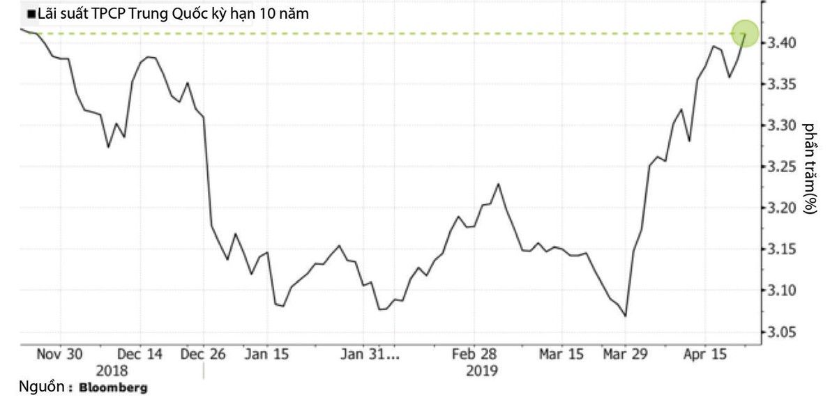 Diễn biến lợi suất trái phiếu chính phủ Trung Quốc kỳ hạn 10 năm.