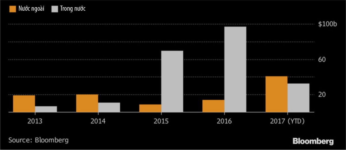 Nếu như năm ngoái, trái phiếu nội địa chiếm tới 60% giá trị trái phiếu phát hành, thì kể từ đầu năm 2017 tới nay, các trái phiếu phát hành tại thị trường nước ngoài đã tăng gần gấp 3 lần. Xu hướng này sẽ tiếp tục khi mới đây, Uỷ ban Phát triển và Cái cách quốc gia Trung Quốc cho biết, sẵn sàng chấp nhận nâng mức hạn ngạch cho các trái phiếu tại thị trường quốc tế. Theo nguồn tin của Bloomberg, đã có 8 nhà phát triển bất động sản Đại lục được cấp thêm hạn ngạch hoặc chuẩn bị được ủy ban này chấp thuận hạn mức mới.