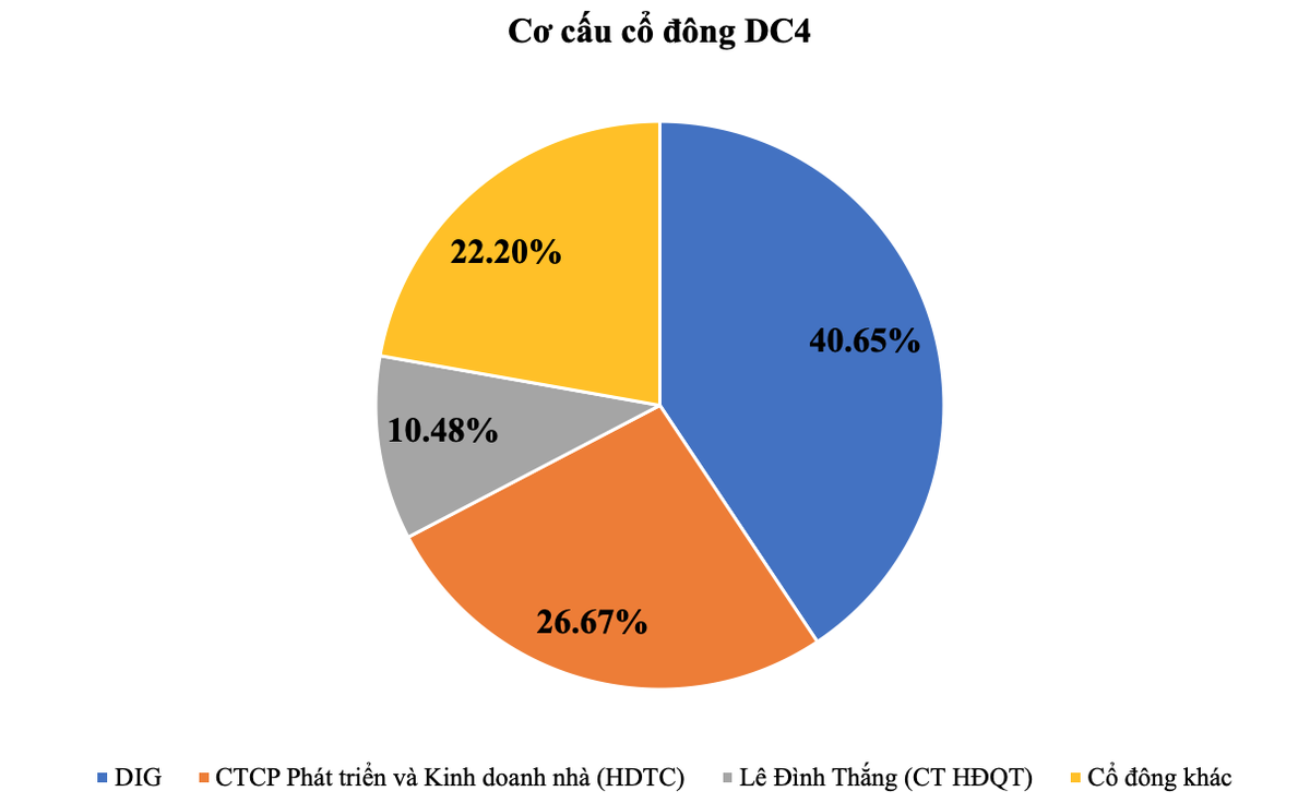 Tính tới thời điểm trước khi lên sàn, cổ đông lớn của doanh nghiệp gồm DIG sở hữu 40,65% vốn điều; Công ty cổ phần Phát triển và Kinh doanh Nhà (HDTC) sở hữu 26,67% vốn điều lệ; ông Lê Đình Thắng, Chủ tịch HĐQT sở hữu 10,48% vốn điều lệ, còn lại những cổ đông khác 22,2% vốn điều lệ.