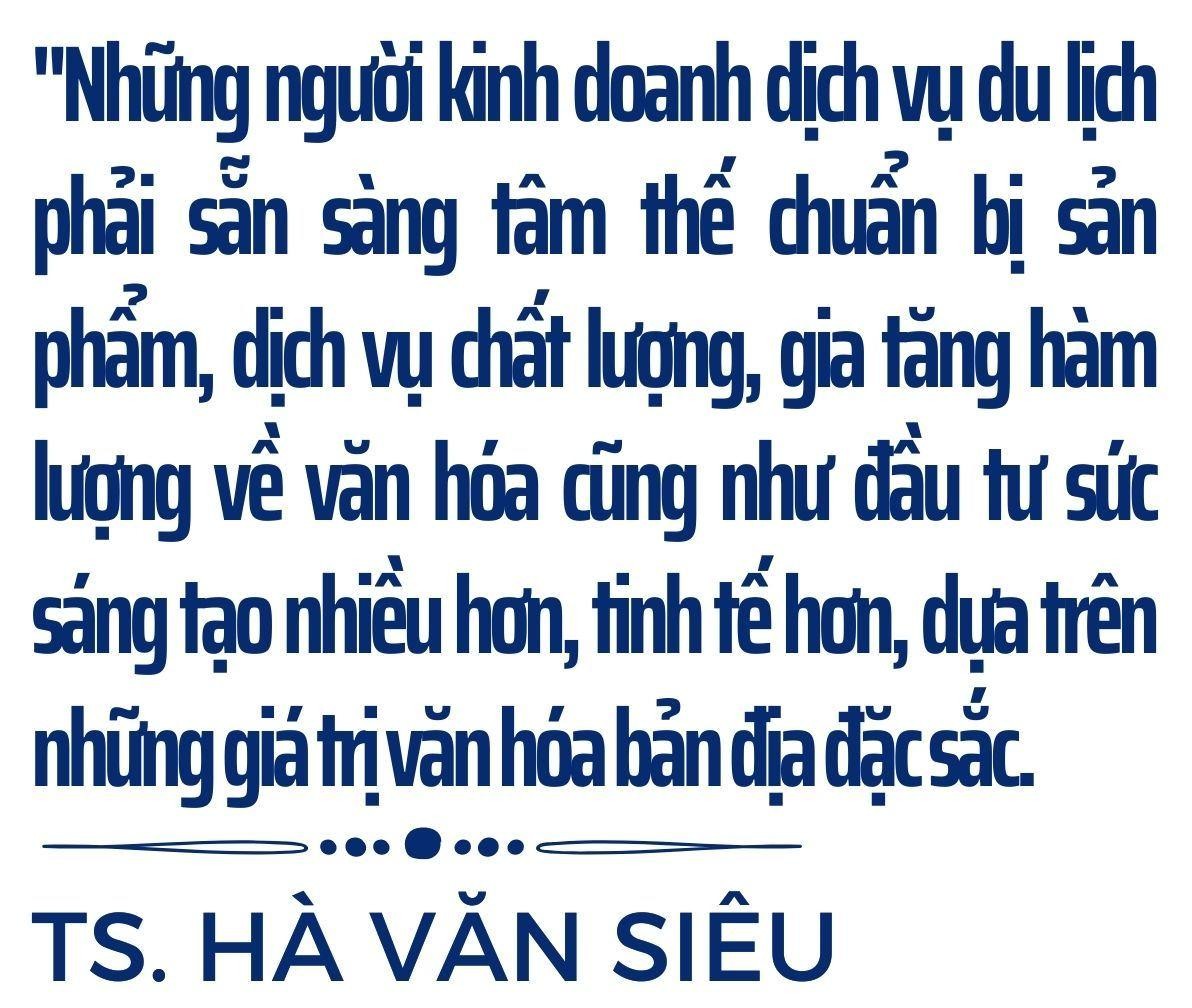 Trước tiên, phải đặt yếu tố an toàn lên hàng đầu, đồng thời chuẩn bị những sản phẩm, dịch vụ có chiều sâu, được thiết kế công phu, mang lại giá trị gia tăng lớn, để chi tiêu của 50 du khách bây giờ bằng doanh thu từ 100 du khách trước kia. Muốn làm được điều đó, cần sáng tạo dựa trên những giá trị văn hóa bản địa đặc sắc.