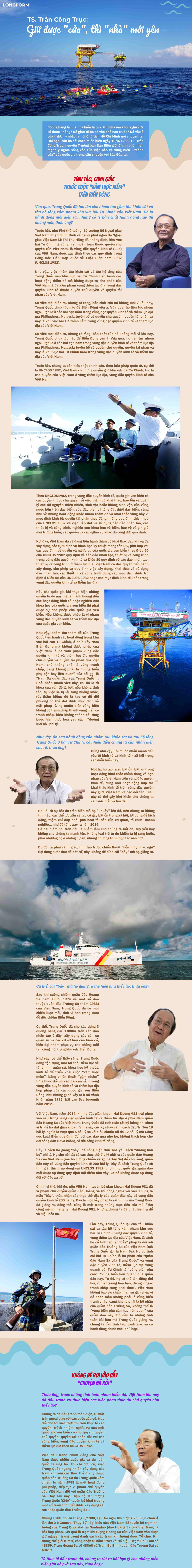 Đồng bằng là nhà, mà biển là cửa. Giữ nhà mà không giữ cửa có được không? Kẻ gian tế sẽ vào chỗ nào trước? Nó vào ở cửa trước” - nhắc lại lời Chủ tịch Hồ Chí Minh nói chuyện tại Hội nghị Cán bộ cải cách miền biển ngày 10/4/1956, TS. Trần Công Trục, nguyên Trưởng ban Ban Biên giới Chính phủ nhấn mạnh ý nghĩa sống còn của việc bảo vệ vùng biển - “cánh cửa” của quốc gia trong câu chuyện với Báo Đầu tư.