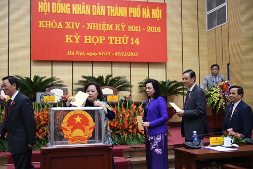 Sáng 4/12, sau khi thông qua các nghị quyết về biên chế hành chính, sự nghiệp của Thành phố và chương trình xây dựng nghị quyết của HĐND Thành phố năm 2016, các đại biểu HĐND Thành phố đã bước vào làm công tác nhân sự.