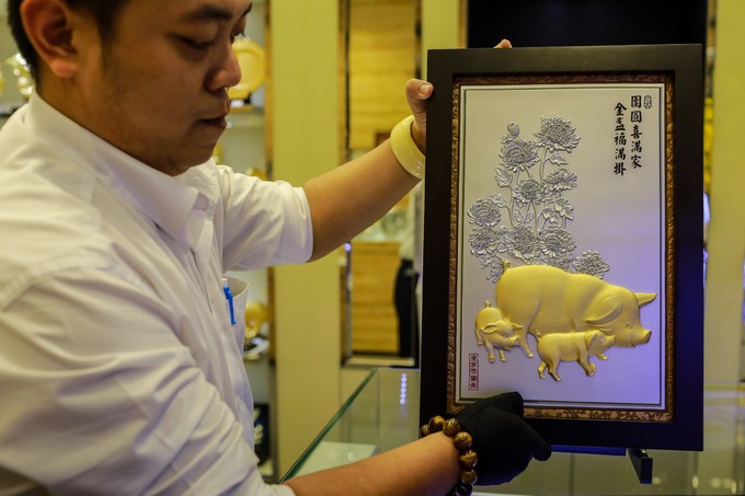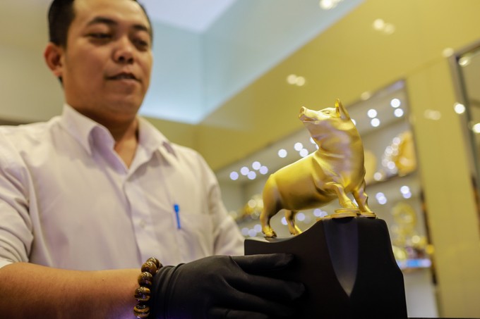 Trong khi đó, để phục vụ nhu cầu mua sắm quà Tết cao cấp, một cửa hàng trong trung tâm thương mại TP HCM nhập tượng heo vàng từ Singapore, Malaysia với mức giá cả trăm triệu đồng, nhưng vẫn “cháy hàng”.