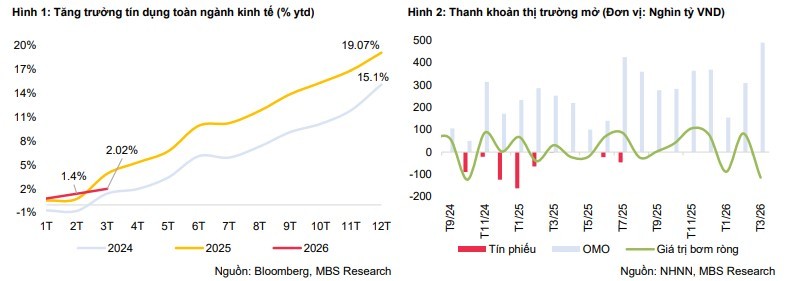 Diễn biến này phản ánh áp lực huy động vốn đang gia tăng rõ rệt, đặc biệt vào thời điểm cuối quý khi các tổ chức tín dụng đẩy mạnh tăng trưởng tín dụng. Theo số liệu của Ngân hàng Nhà nước, đến ngày 23/3, dư nợ tín dụng toàn hệ thống ước tăng khoảng 2,02% so với cuối năm 2025.