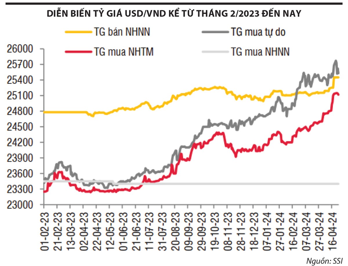 Tỷ giá USD/VND hiện có mức tăng gần 5% so với cuối năm 2023