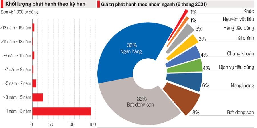 Theo Hiệp hội Trái phiếu Việt Nam, luỹ kế 6 tháng đầu năm 2021, có 306 đợt phát hành trái phiếu doanh nghiệp trong nước với tổng giá trị phát hành đạt 186.683 tỷ đồng, trong đó, có 293 đợt phát hành riêng lẻ với tổng giá trị phát hành là 177.098 tỷ đồng và 13 đợt phát hành ra công chúng giá trị 9.584 tỷ đồng.