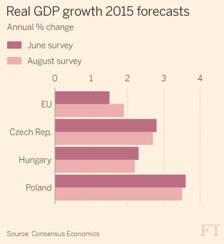 Sản lượng sản xuất ở Hungary, Cộng hòa Séc và Ba Lan, tất cả đã co lại trong tháng 8, trong khi tổng lợi nhuận của 500 doanh nghiệp lớn nhất khu vực đã suy giảm trong năm ngoái, theo một nghiên cứu thường niên được công bố trong tuần này bởi Deloitte, một công ty tư vấn và Rzeczpospolita, một tờ báo của Ba Lan.