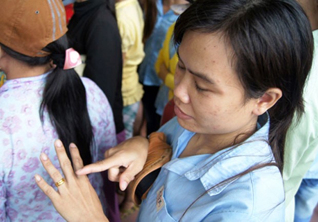 Công nhân sau giờ tan ca hay tin cũng đến xếp hàng bán vàng
