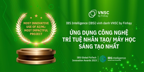 Nhóm tính năng AI trên VNSC by Finhay vừa qua đã được vinh danh tại hạng mục Nền tảng đầu tư ứng dụng công nghệ AI/ML (Trí tuệ nhân tạo/ Máy học) sáng tạo nhất của giải thưởng IBSi Global FinTech Innovation Awards 2023 của IBS Intelligence (IBSi) - tổ chức có thâm niên 30 năm chuyên nghiên cứu, tư vấn và phân tích chuyên sâu cho hơn 2000 công ty Fintech toàn cầu.